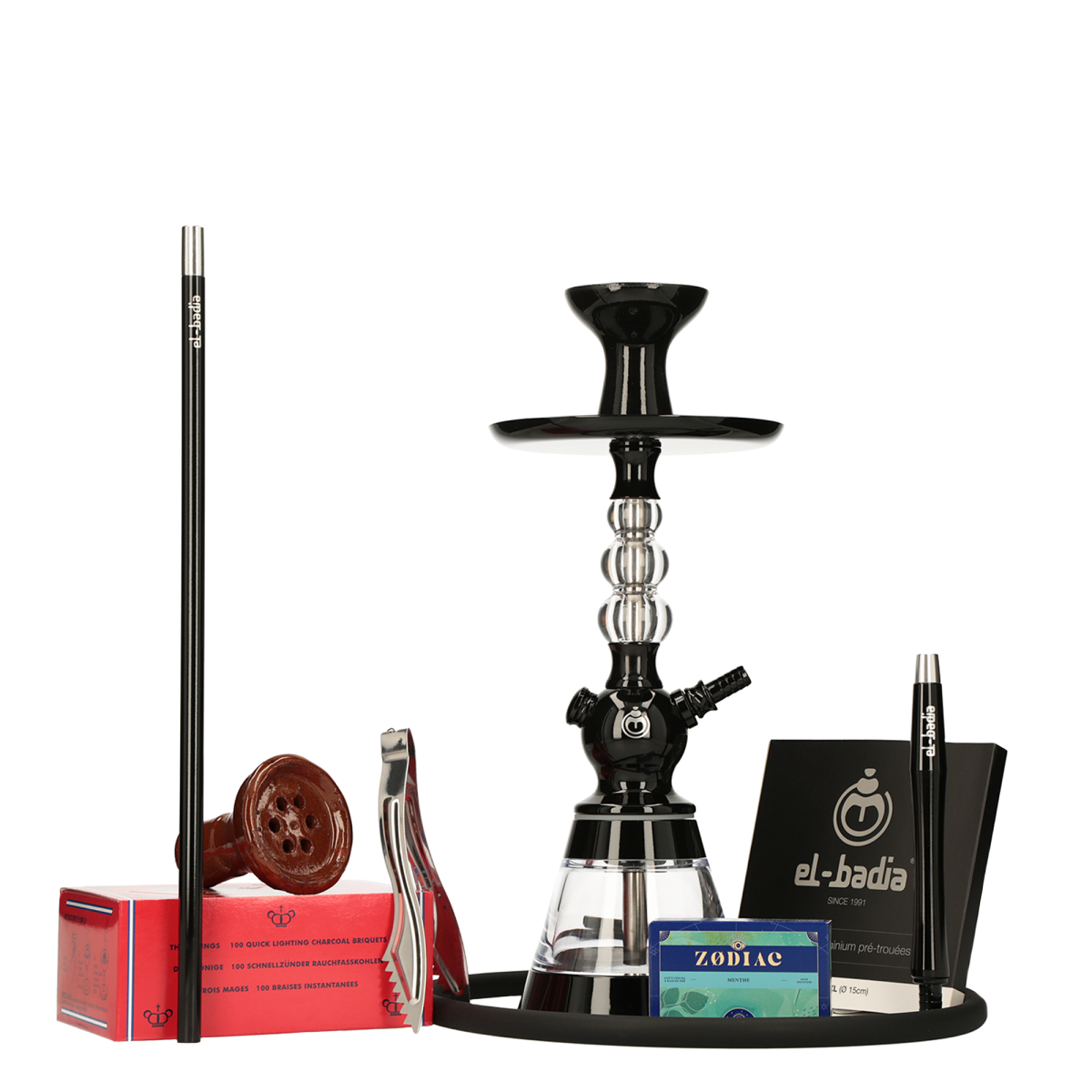 Pack shisha el Badia celeste + carbon black coco 26 + sabor sin nicotina+  papel de plata